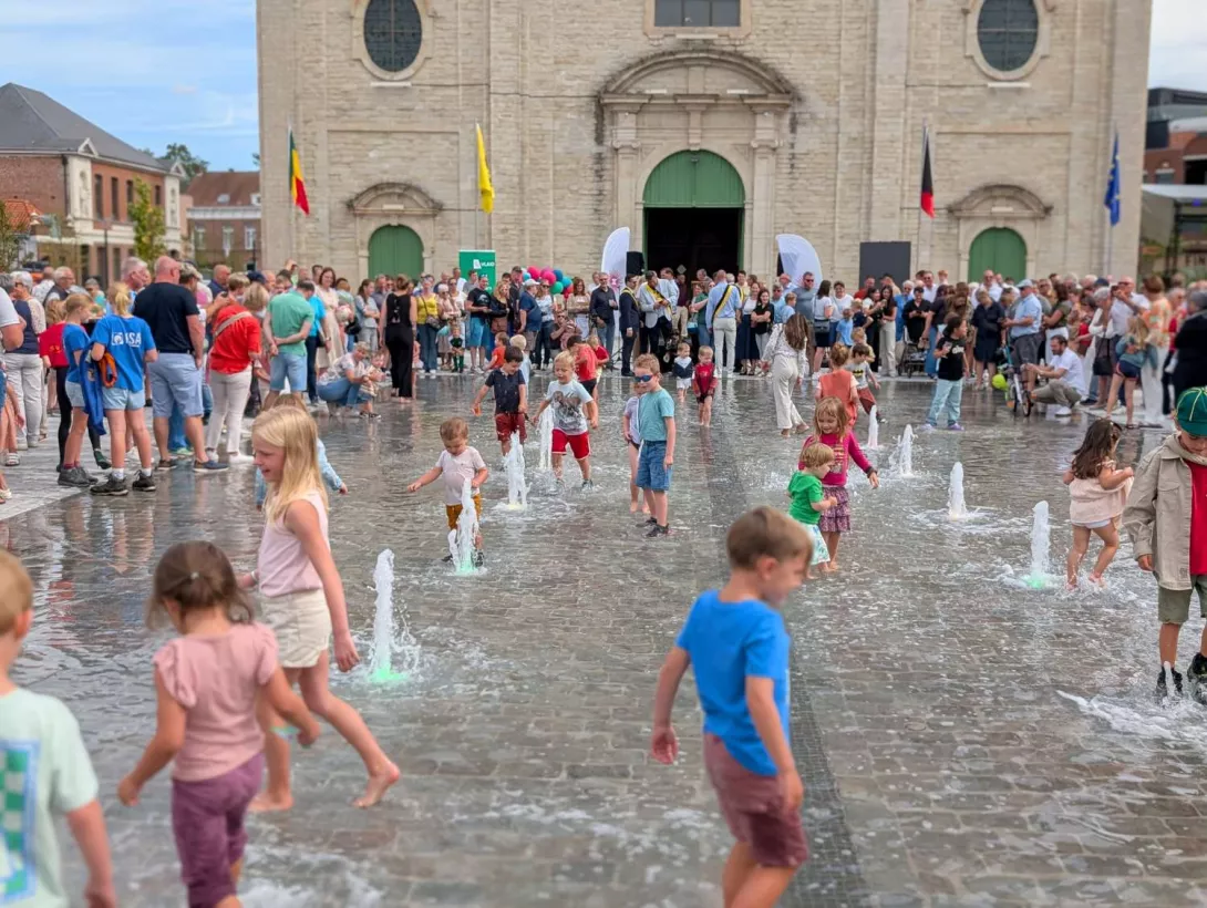 De eerste dagen tonen al hoe sterk het plein zijn rol vervult: kinderen spelen in de fonteinen, vrienden ontmoeten elkaar op bankjes met zicht op het gebeuren, en terrassen bruisen opnieuw. Het is een plein dat de toekomst van Zele ondersteunt en uitnodigt.