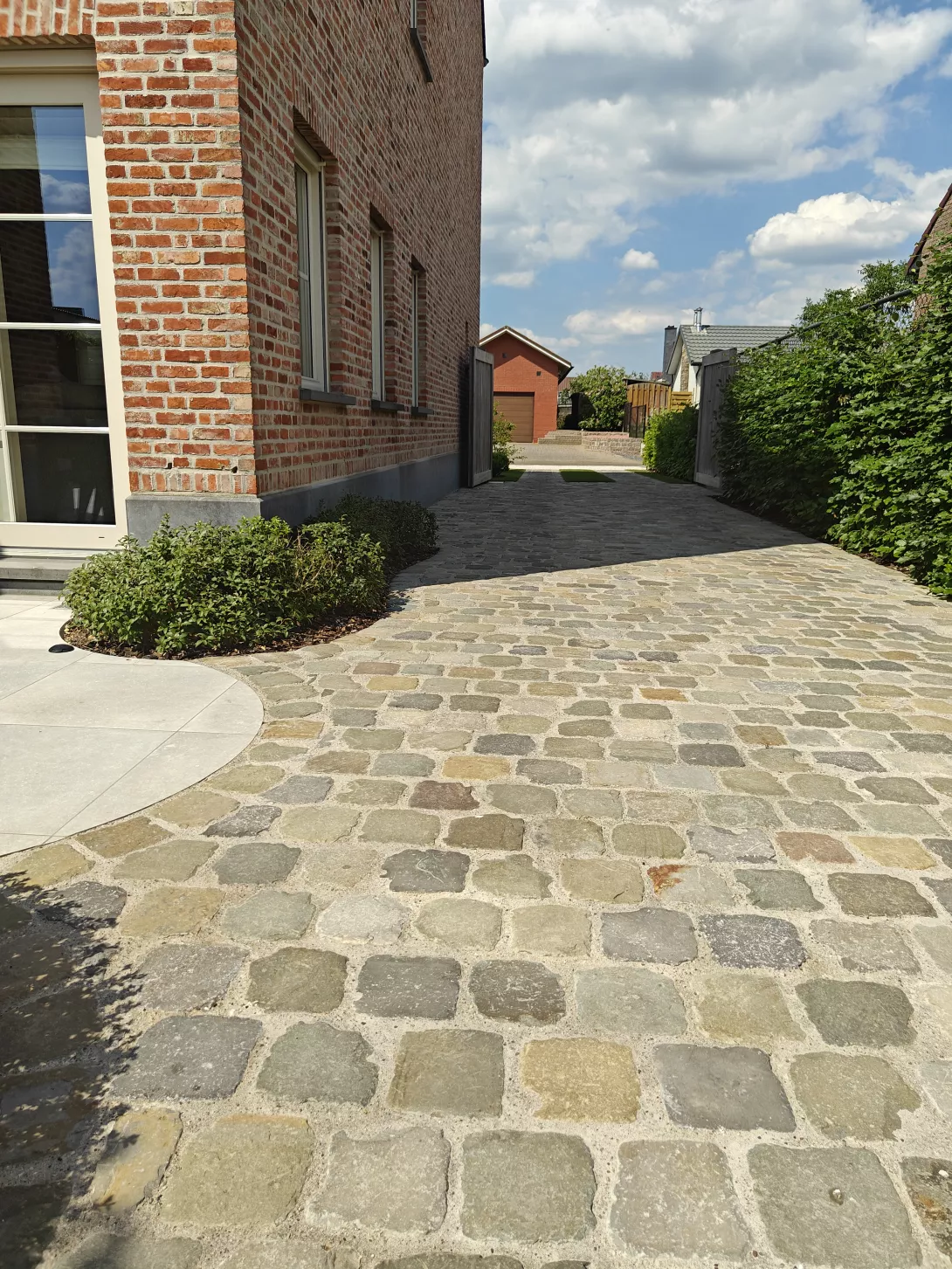 Belgische Blauwe Hardsteen geschuurd en verouderd.